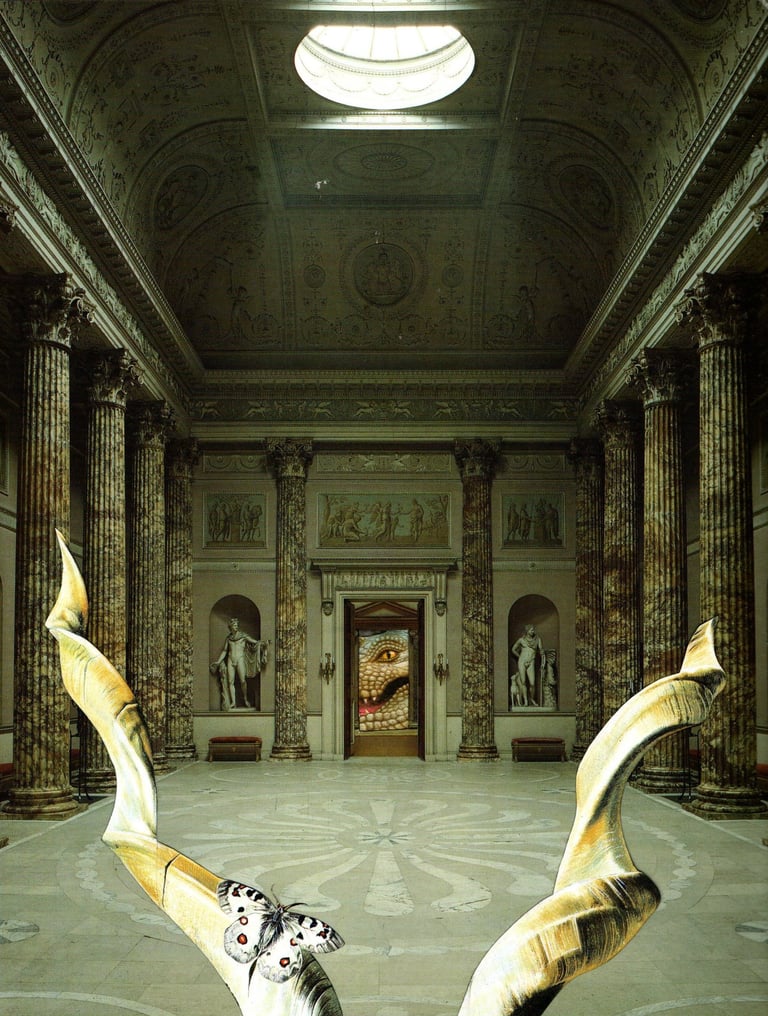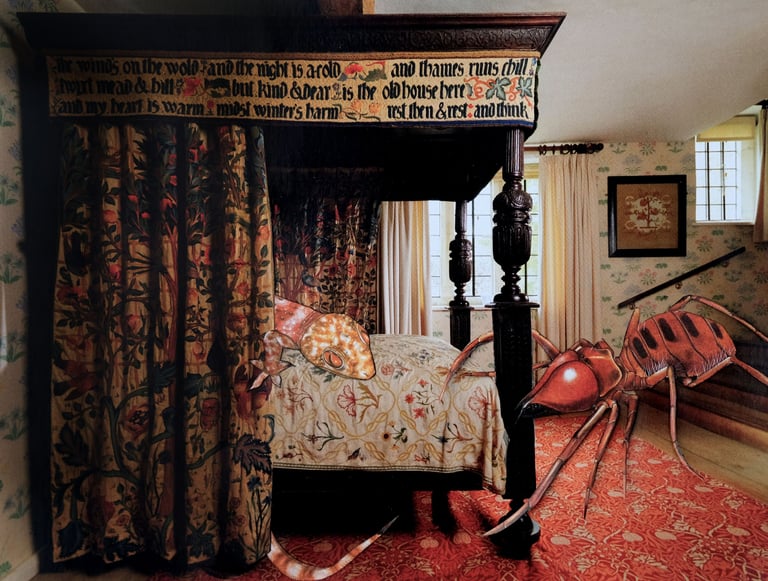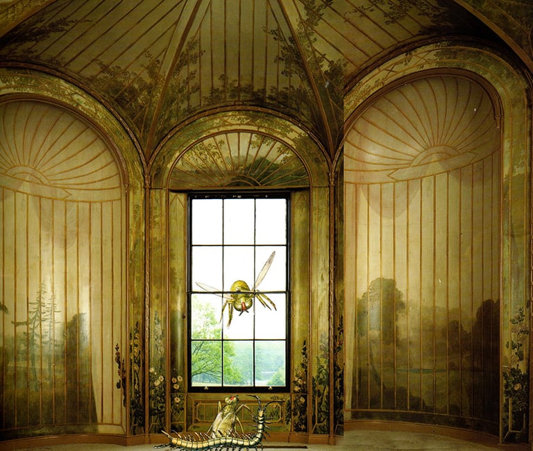 In this quiet series of hand-cut collages, each piece captures the suspended breath just before the embrace—the fragile, electric seconds when two beings hover at the edge of contact, neither yet committed, both already changed by the nearness. Reptiles and insects, meticulously excised from vintage books, lean toward one another across invisible thresholds: where the space between bodies feels thicker than touch itself, luminous with the promise of collision yet still cradling the solitude that makes the leap meaningful.