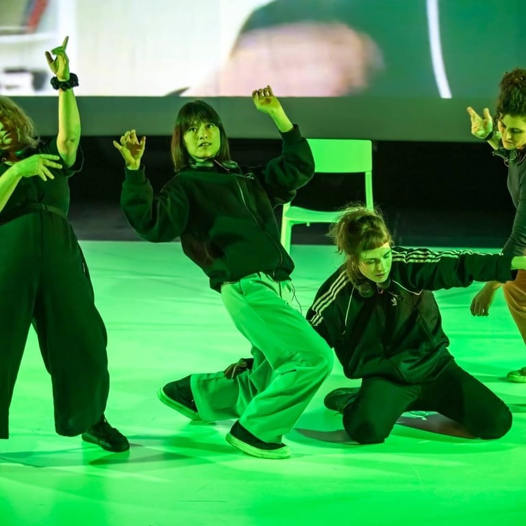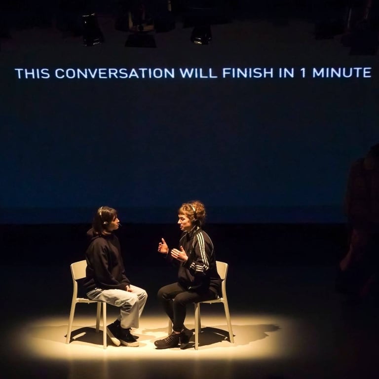 Two performers from different continents meet live – for the first time – on screen. Two further performers are on stage in Bristol, interpreting their encounter.