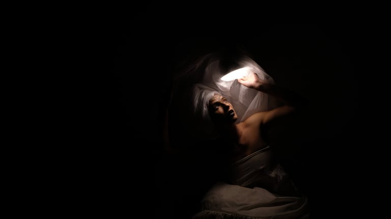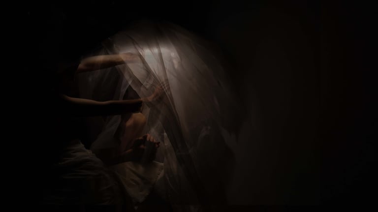 I move as one does when no one is watching, yet everyone is. A slow unfolding of the arm, as though parting water that isn’t there. A turning of the spine that feels like listening to something older than bone. Each gesture arrives late, after the impulse has already softened into memory.